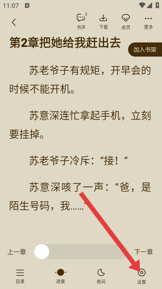 3、在閱讀界面中,點擊底部導航欄最右側(cè)的設置選項。