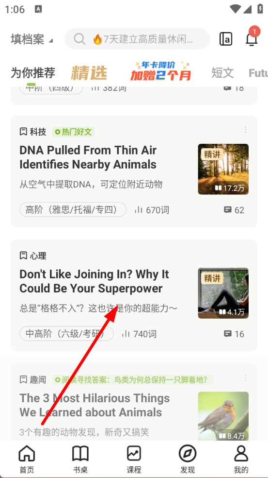 3、在首頁挑選喜歡的短文,點擊進入閱讀。