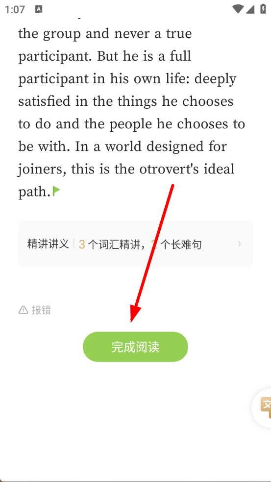 4、點擊文章底部完成閱讀,滿足打卡條件。