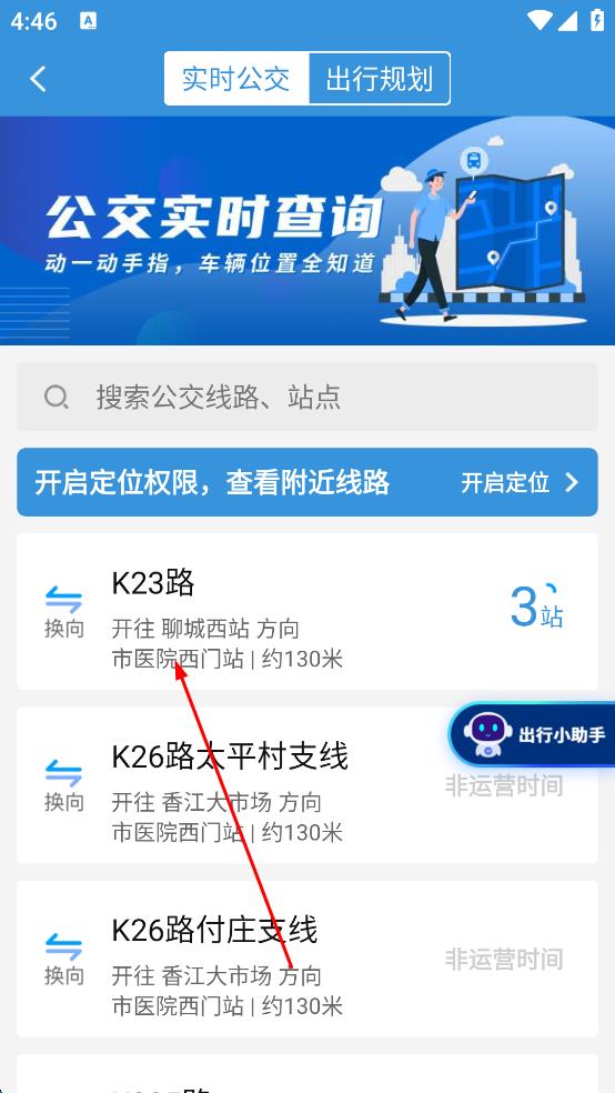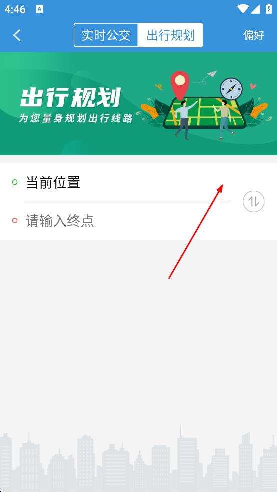 2、在實時公交頁面,點擊“出行規(guī)劃”標(biāo)簽,切換至出行規(guī)劃界面 。