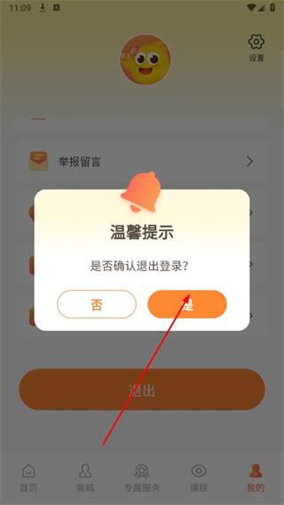 3、在彈出的溫馨提示框中,點(diǎn)擊是按鈕,退出登錄。