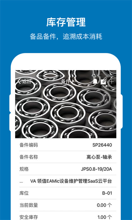 EAMic移動工具是和EAMic?設(shè)備維護管理系統(tǒng)相關(guān)聯(lián)的移動應(yīng)用程序,而EAMic是由領(lǐng)值(上海)信息技術(shù)有限公司設(shè)計和開發(fā)的設(shè)備維護管理系統(tǒng)。EAMic?可以幫助企業(yè)提高資產(chǎn)使用率、減少非計劃停機時間、提高設(shè)備可靠性,主要的功能有報修、維護工單處理、預(yù)防性保養(yǎng)工單執(zhí)行、點巡檢執(zhí)行、儀表讀數(shù)反饋、報表決策支持和相關(guān)設(shè)備維護信息查詢。