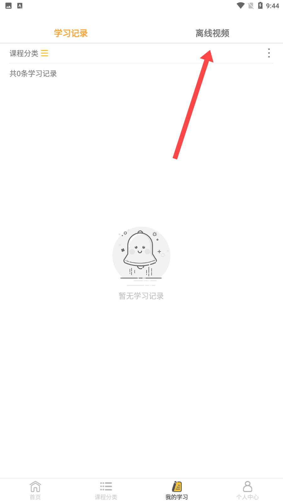 3、進(jìn)入我的學(xué)習(xí)界面,頂部有學(xué)習(xí)記錄和離線視頻兩個(gè)標(biāo)簽,方便管理學(xué)習(xí)軌跡,查看離線資源。