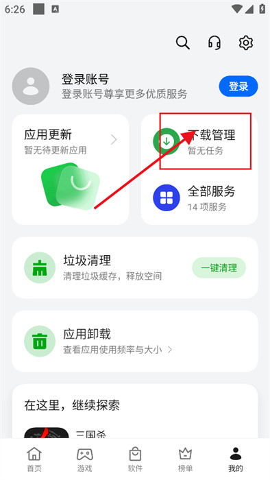 2、隨后,找到【下載管理】,點(diǎn)擊進(jìn)入查看之前的軟件信息;