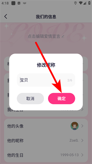 4、在“修改昵稱”彈窗中輸入新昵稱后,點擊確定按鈕完成修改。