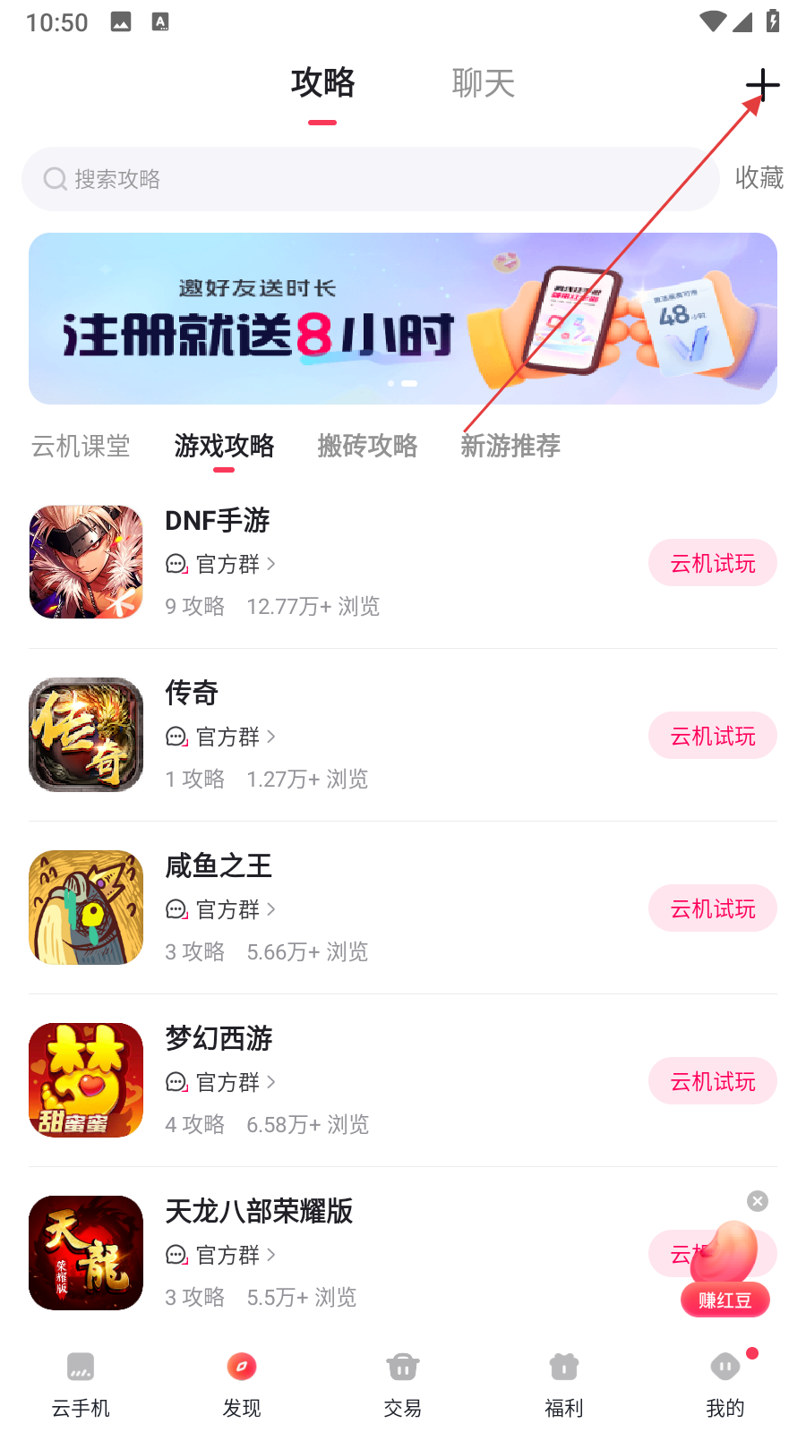 1、打開紅手指云手機應(yīng)用,點擊界面右上角的加號按鈕。