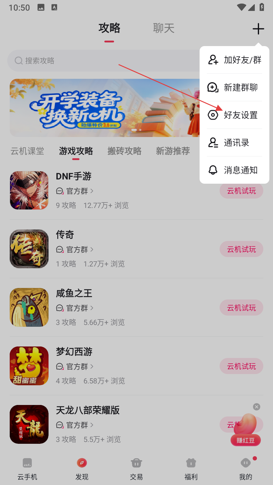 2、在彈出的選項中找到好友設(shè)置并點擊,進入好友設(shè)置界面。