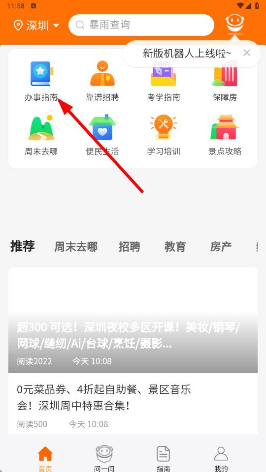 1、打開本地寶APP,進入首頁,在首頁眾多功能模塊中,點擊“辦事指南”圖標,這是進入各類辦事信息查詢的入口。