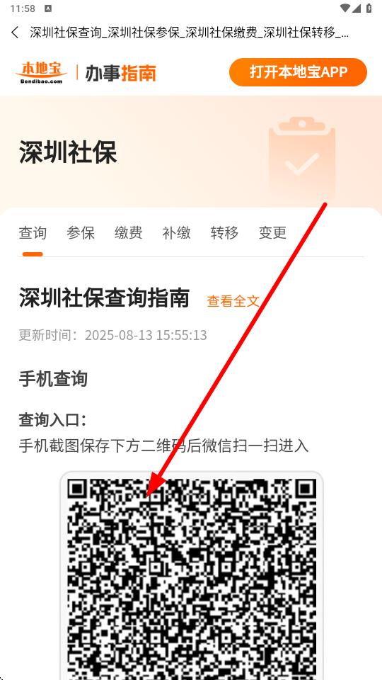 3、在深圳社保辦事指南頁面,可看到社保查詢、參保、繳費等多個選項。點擊“查詢”選項卡下的相關(guān)內(nèi)容,如社保查詢指南 ,