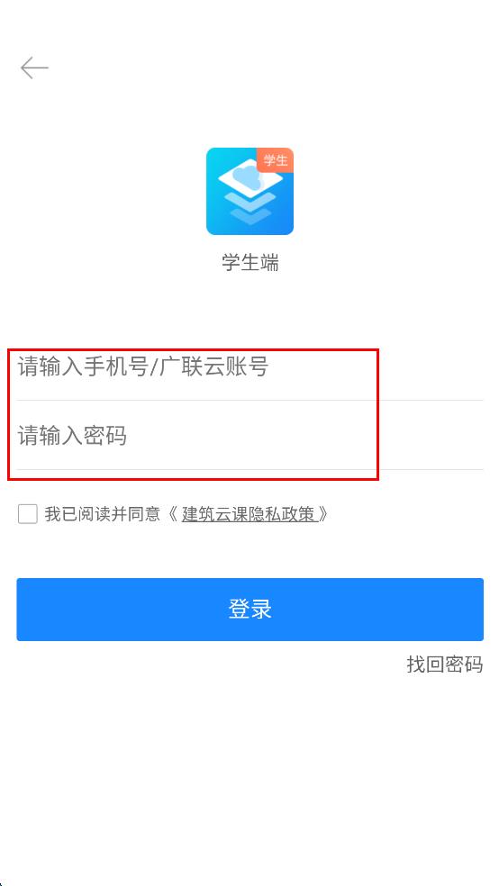 3、在賬號密碼登錄模式下,先輸入手機號或廣聯(lián)云賬號,接著輸入密碼策。