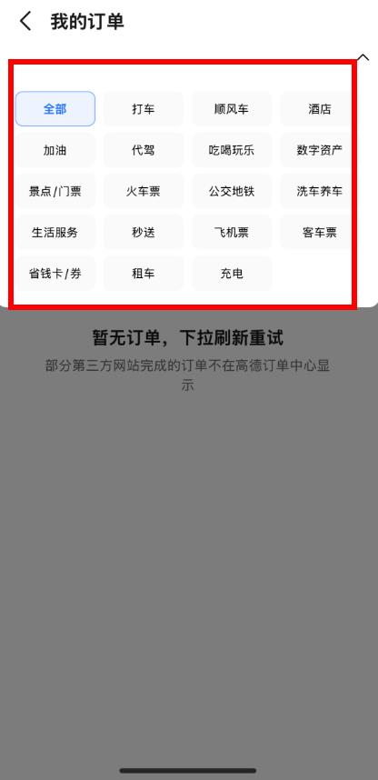 3、進(jìn)入我的訂單頁面后,可以看到全部,打車,順風(fēng)車,酒店等多種分類標(biāo)簽,點(diǎn)擊相應(yīng)標(biāo)簽就能查看對應(yīng)類型的訂單記錄。