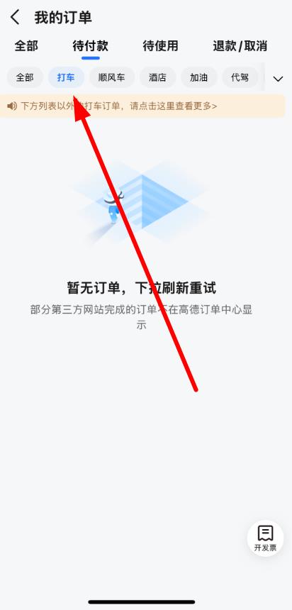 4、比如點(diǎn)擊打車標(biāo)簽,就能查看打車相關(guān)的訂單情況,若要查看其他類型訂單,點(diǎn)擊對應(yīng)標(biāo)簽即可。