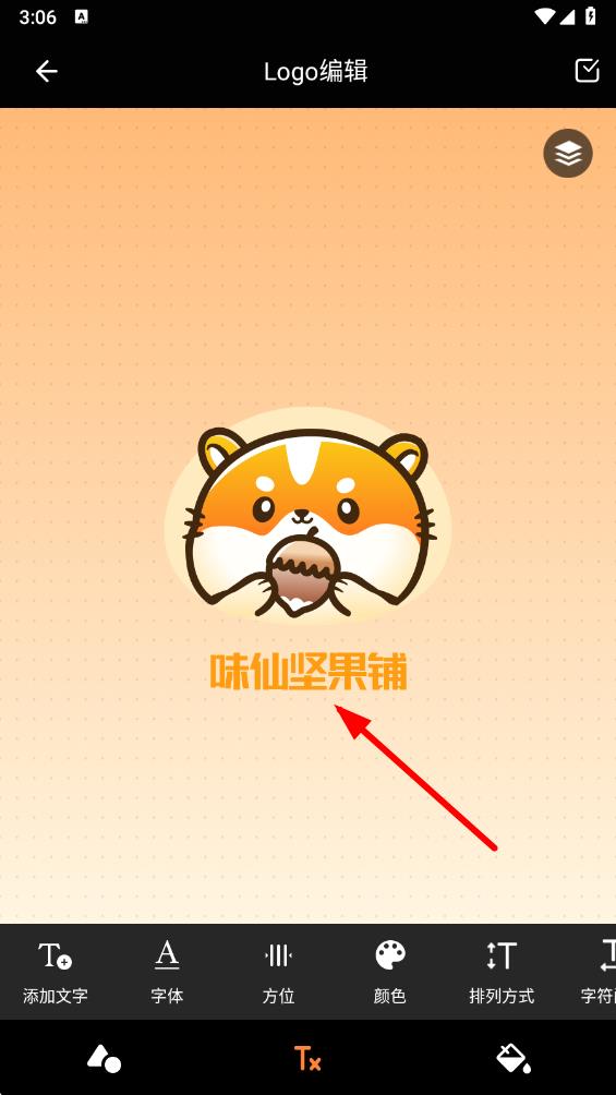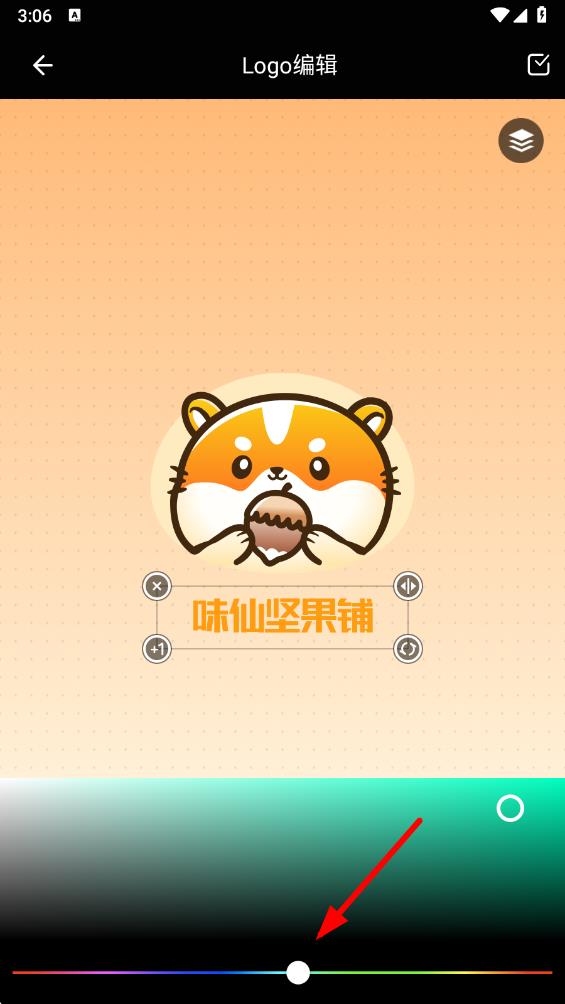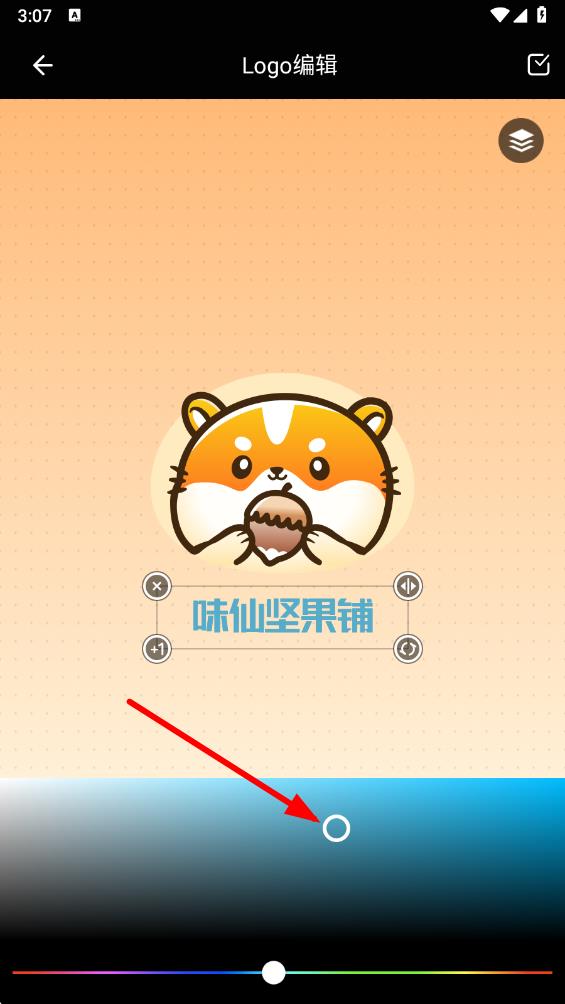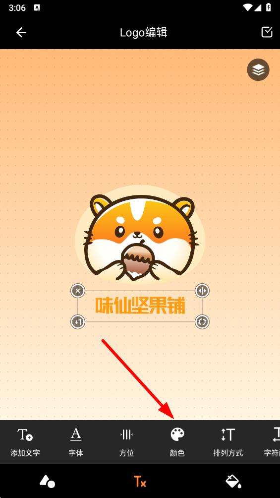 1、進(jìn)入logo編輯界面,找到需要更改顏色的部分,點(diǎn)擊選中。