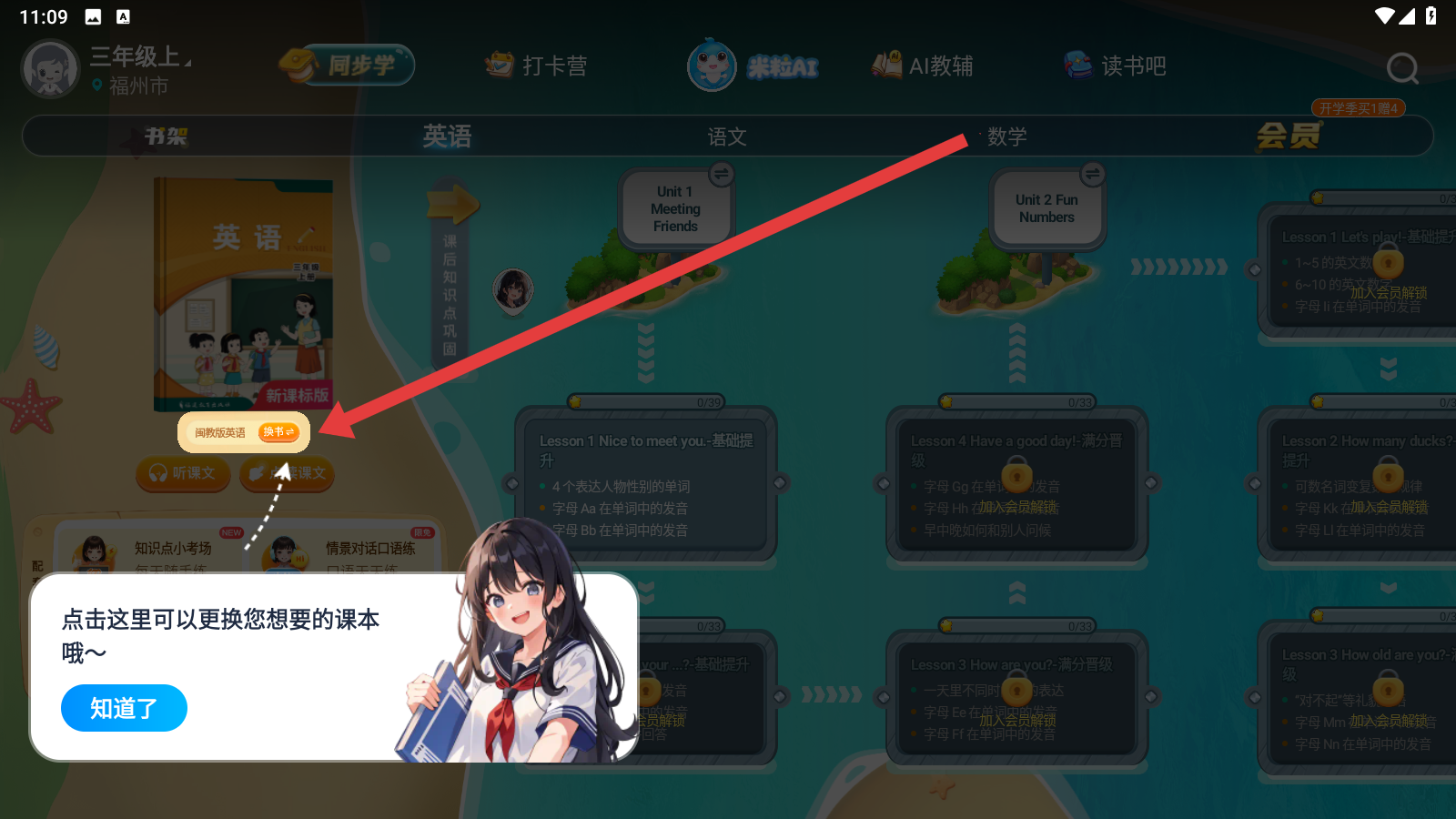 2、點(diǎn)擊換書按鈕,可以更換想要的課本。