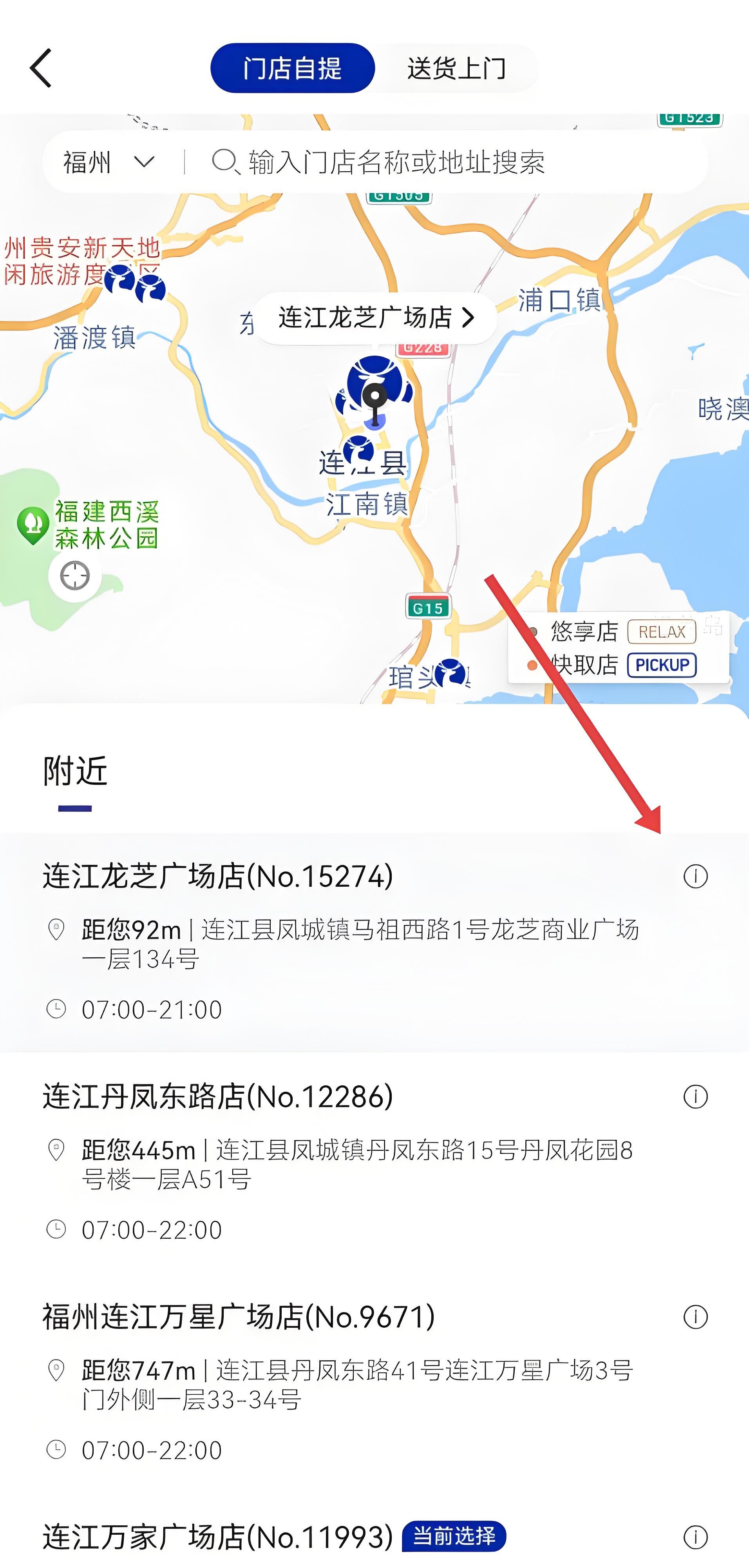 1、打開瑞幸咖啡APP,進入門店服務頁面,在附近門店列表中選擇目標門店,點擊進入該門店詳情頁。