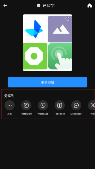 輸出高分辨率圖片,分享到Instagram,F(xiàn)acebook,Whatsapp等。