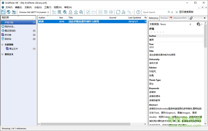 EndNote有著易用的界面和強(qiáng)大的文獻(xiàn)搜索功能,對(duì)中文也支持良好,是科研工作者不可多得的好助手,無(wú)論是文獻(xiàn)的檢索、管理、文獻(xiàn)全文的自動(dòng)獲取,還是論文寫(xiě)作過(guò)程中的文獻(xiàn)引用插入、SCI期刊模板等方面,均可為用戶提供強(qiáng)大幫助。