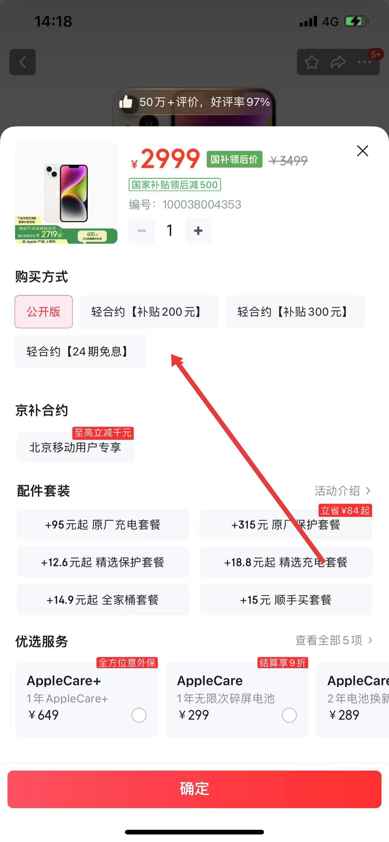 2、進(jìn)入想分期購買的手機(jī)商品頁面,點擊領(lǐng)取補(bǔ)貼購買。