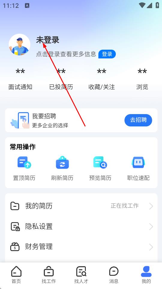 2、在我的頁面,點擊未登錄區(qū)域。