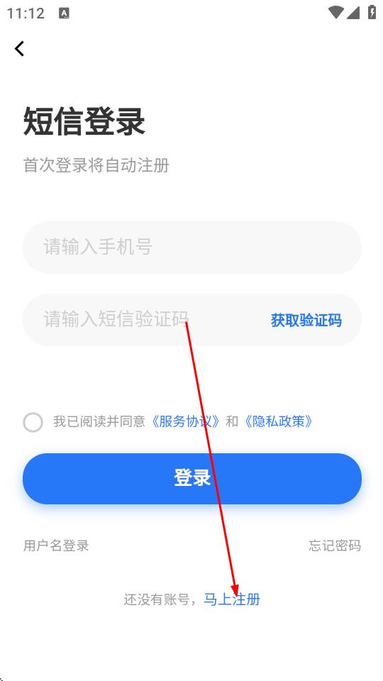 3、進(jìn)入短信登錄頁面,點擊下方還沒有賬號,馬上注冊選項。