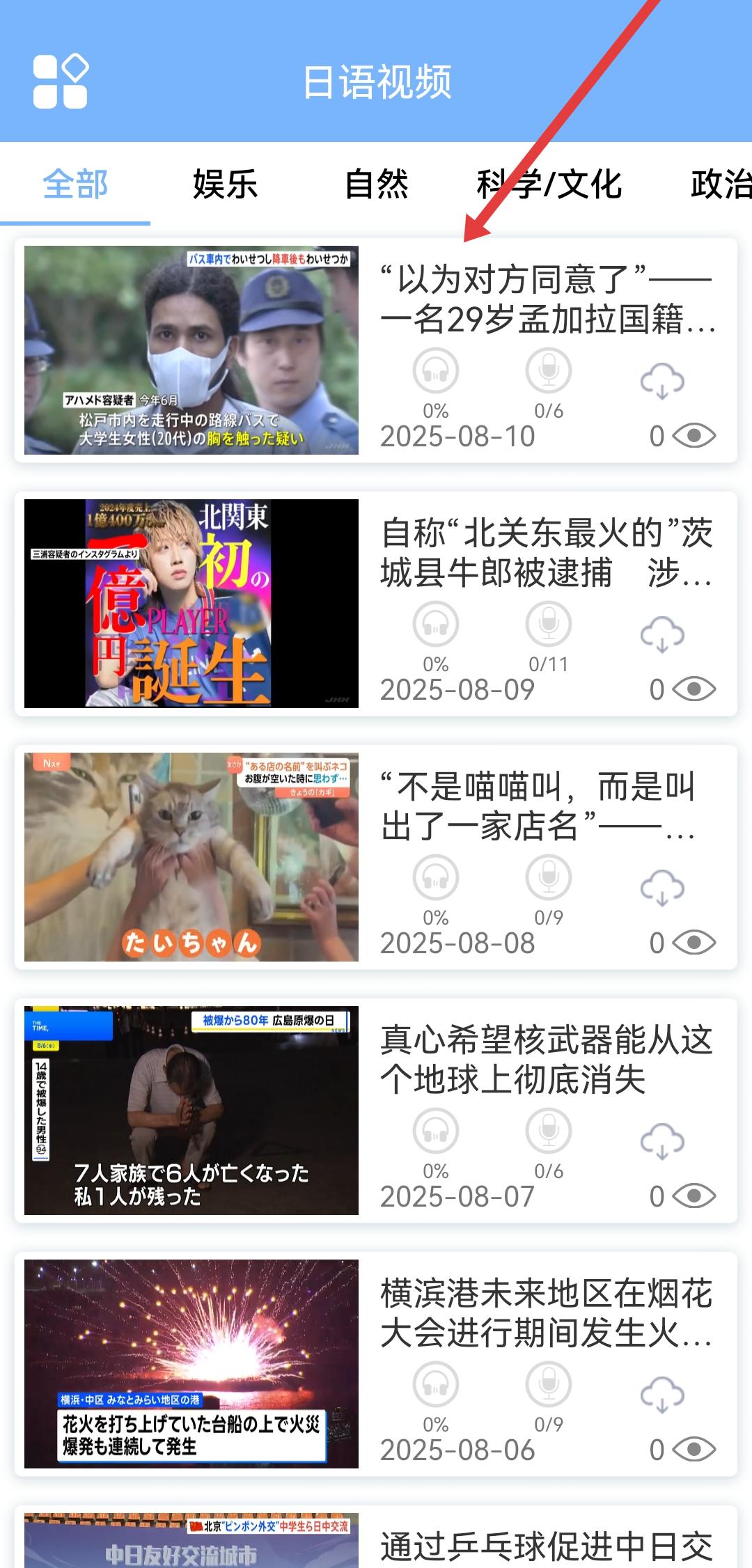 3、在日語視頻列表頁面,選擇目標(biāo)視頻并點擊,進入視頻播放頁面。