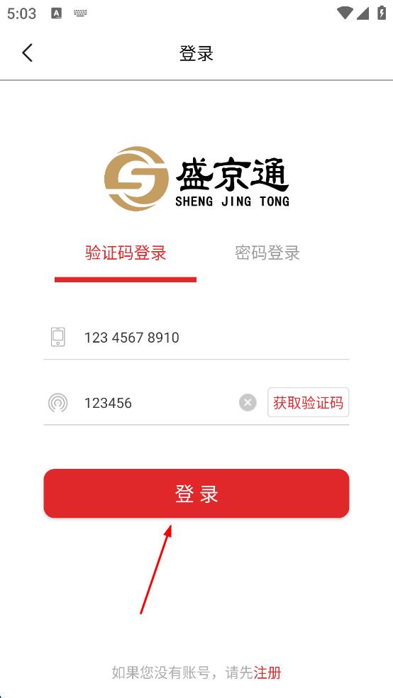 4、確認(rèn)手機(jī)號(hào)和驗(yàn)證碼輸入無(wú)誤后,點(diǎn)擊頁(yè)面中間的“登錄”按鈕。
