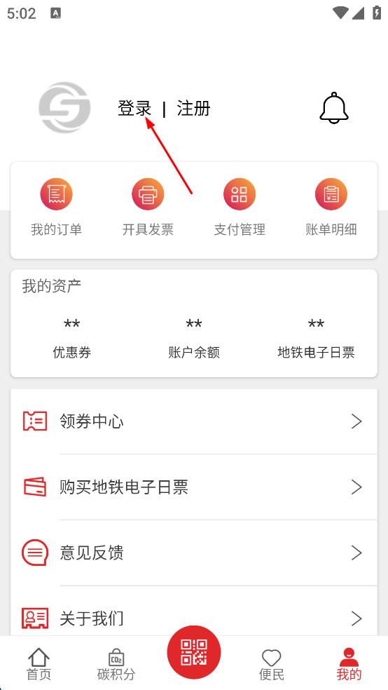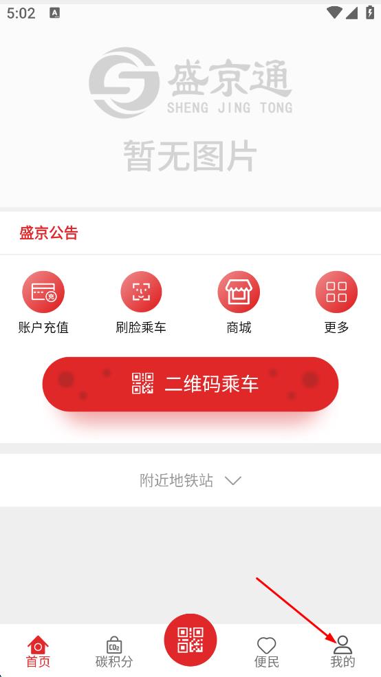 1、打開(kāi)盛京通APP,進(jìn)入首頁(yè)后,點(diǎn)擊頁(yè)面右下角“我的”選項(xiàng)。