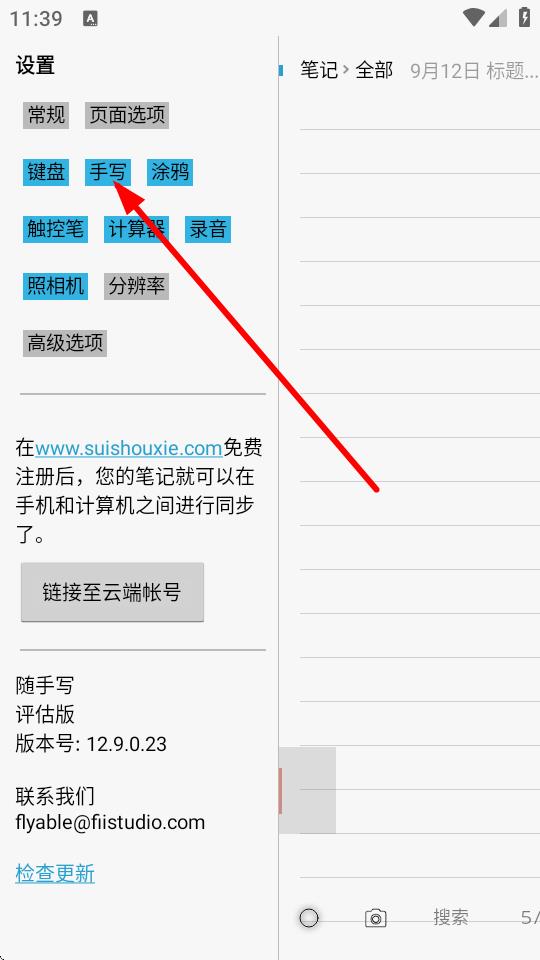 4、在出現(xiàn)的選項(xiàng)中,點(diǎn)擊手寫,即可打開手寫功能。
