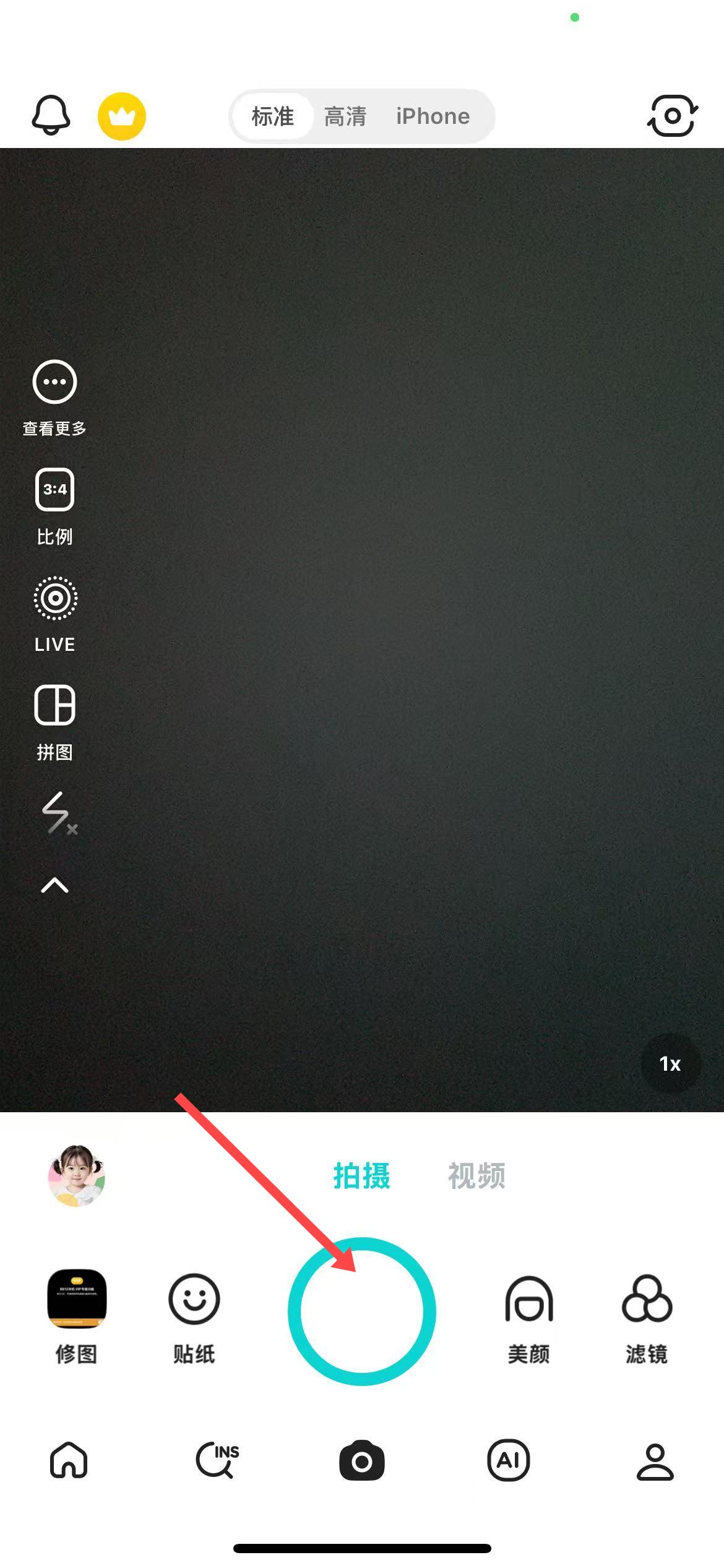 1、打開B612相機(jī)APP,點(diǎn)擊底部中間的相機(jī)按鈕進(jìn)行拍攝。