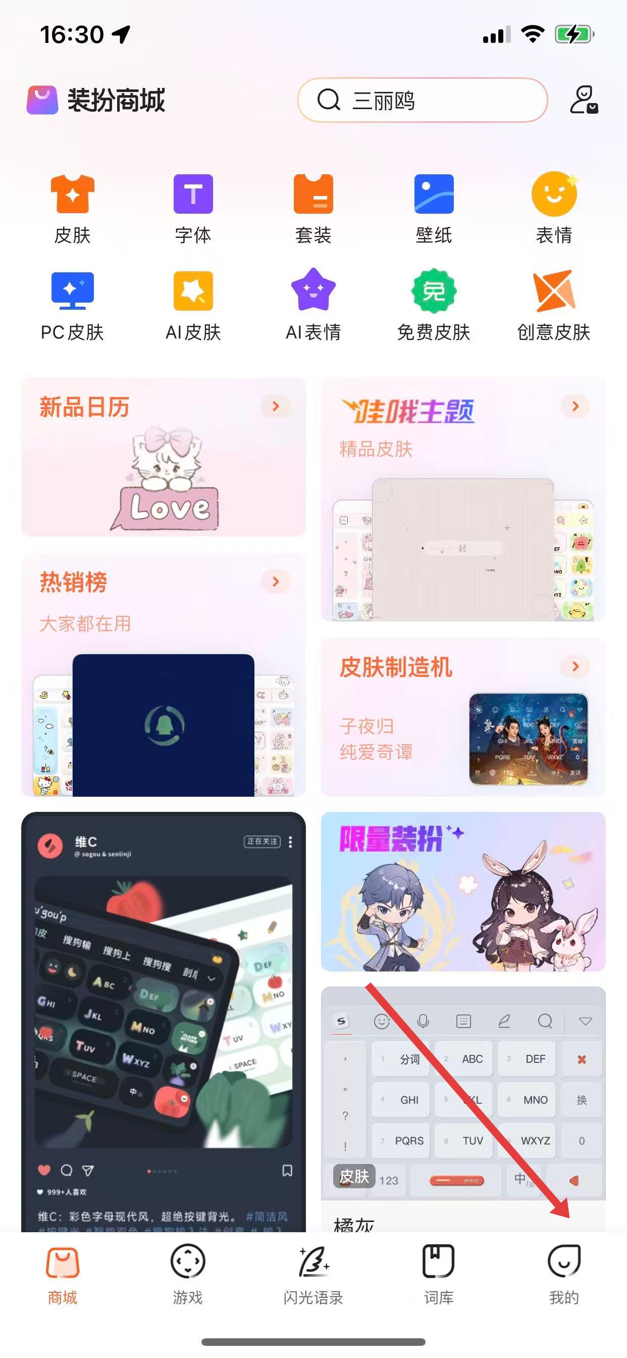 1、打開搜狗輸入法,點(diǎn)擊右下角我的,進(jìn)入個(gè)人界面。