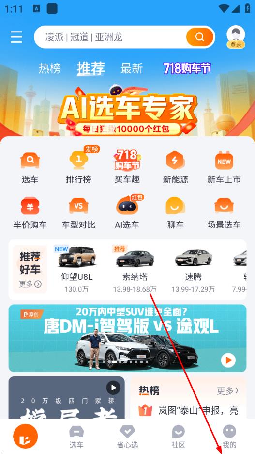 1、打開太平洋汽車App,點(diǎn)擊底部導(dǎo)航欄中的我的選項(xiàng)。
