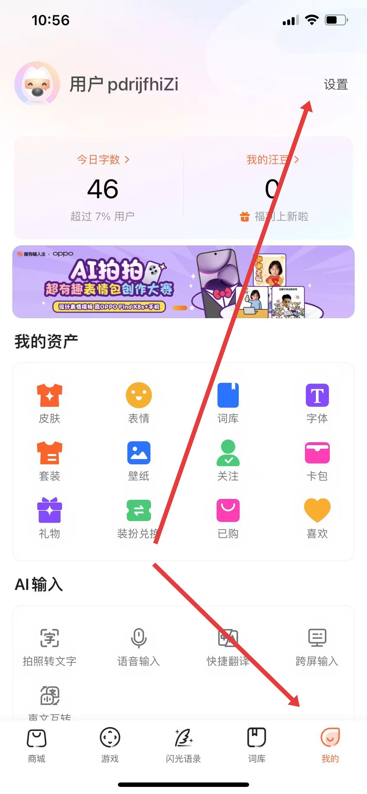 1、打開搜狗輸入法,進入個人中心頁面,點擊右上角的設(shè)置。