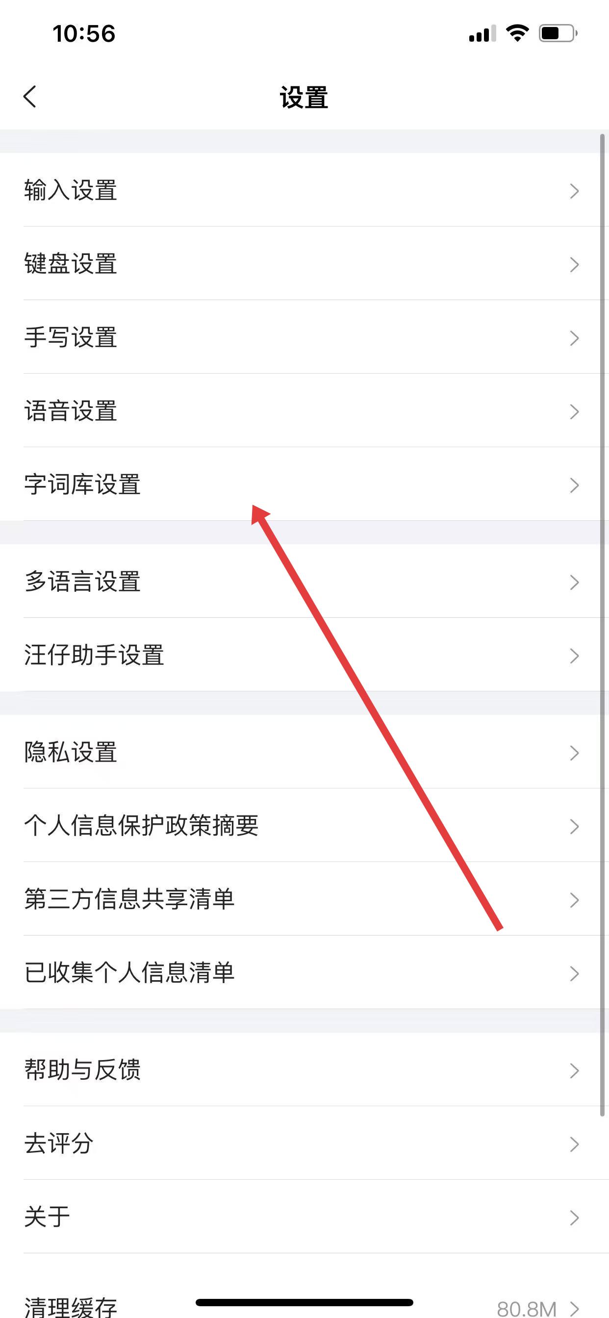 2、在設(shè)置頁面中,找到并點擊字詞庫設(shè)置選項。