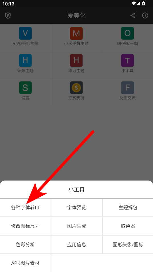 3、在小工具界面中,點(diǎn)擊“各種字體轉(zhuǎn)ttf”選項(xiàng)。