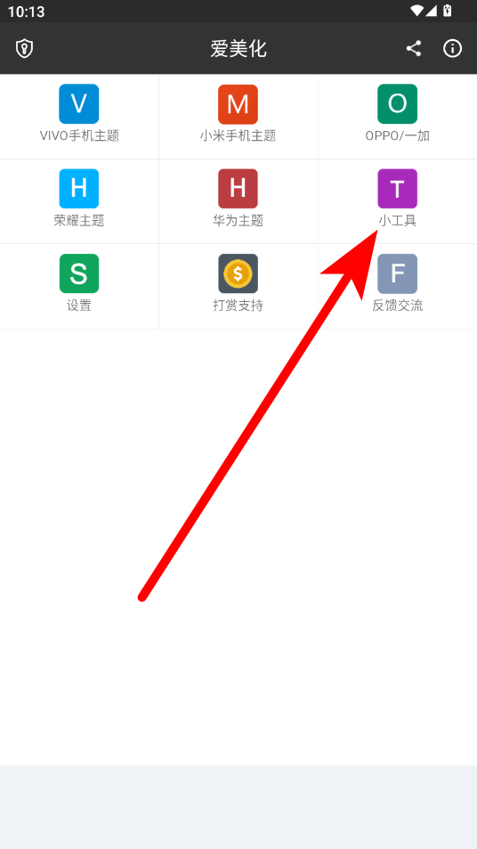 2、進(jìn)入愛美化App主界面后,點(diǎn)擊“小工具”選項(xiàng)。