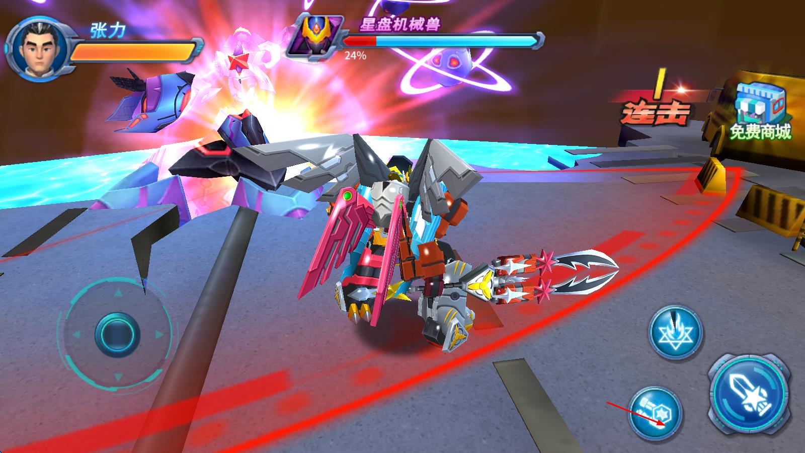 在游戲戰(zhàn)斗中,面對強大的敵人,你可以召喚戰(zhàn)隊成員和合體星甲來應(yīng)對特性各異的敵人、BOSS精英,讓你感覺到什么叫做酷爽炫麗的打擊快感,在面對無法輕松戰(zhàn)勝的敵人時,微操+策略才是取勝的關(guān)鍵。