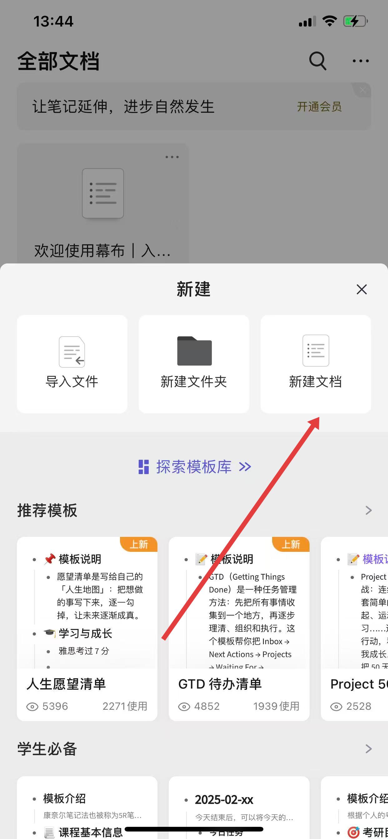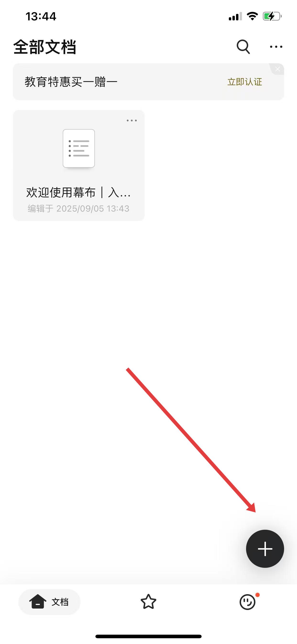 1、打開幕布App,進入全部文檔頁面,點擊右下角的+號按鈕。