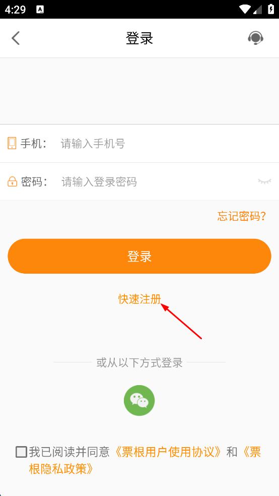 3、在登錄界面,點(diǎn)擊“快速注冊”選項,進(jìn)入注冊頁面。