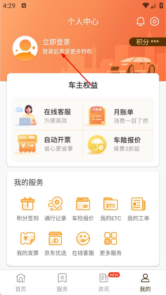 2、在個人中心頁面,點(diǎn)擊“立即登錄”字樣,進(jìn)入登錄界面。
