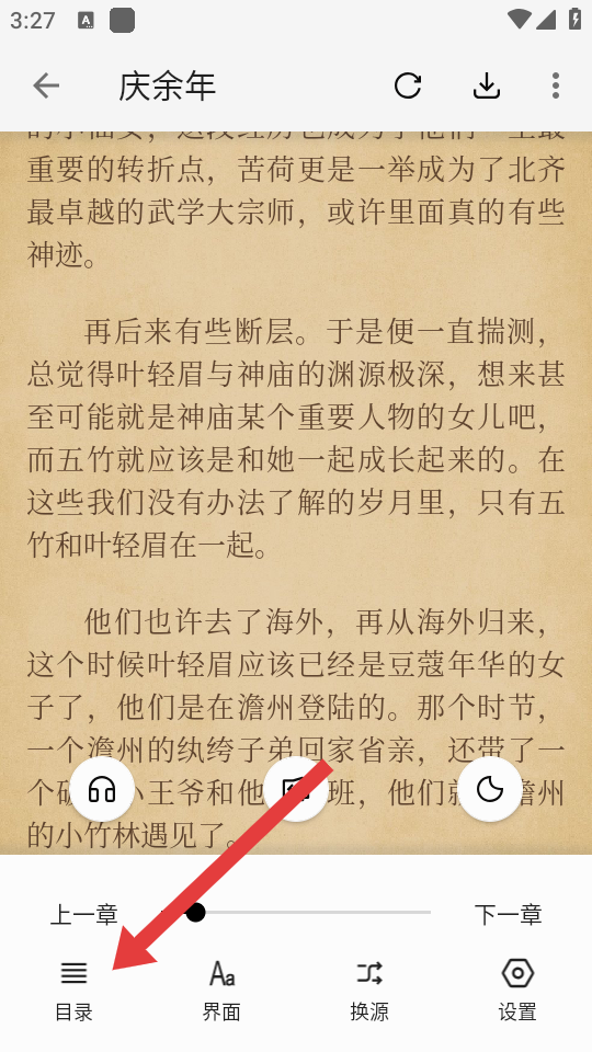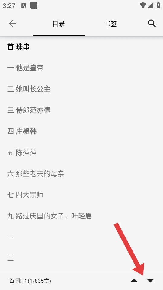 4、在目錄的頁(yè)面,我們可以通過(guò)點(diǎn)擊底部的上下箭頭來(lái)進(jìn)行調(diào)動(dòng)目錄章節(jié)。