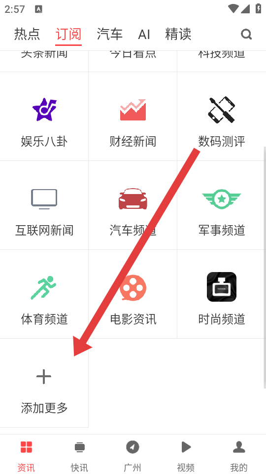 1、打開ZAKER,在訂閱界面點擊添加更多,進(jìn)入發(fā)現(xiàn)頻道列表。