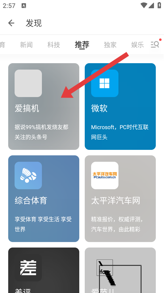 2、在發(fā)現(xiàn)頻道列表中,點擊目標(biāo)頻道如愛搞機,進(jìn)入頻道詳情頁。