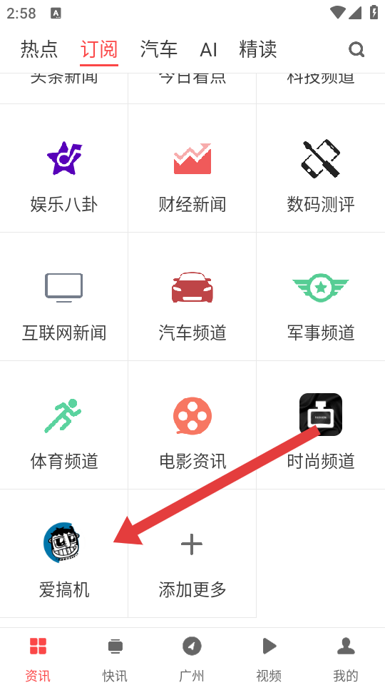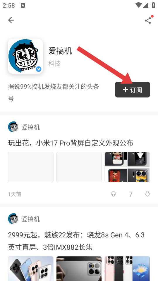 4、返回訂閱的界面,可看到已訂閱的愛搞機頻道顯示在列表中。