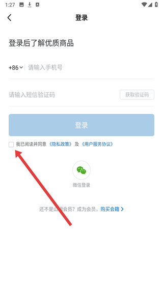 2、在進入到登錄頁面中,需要先點擊勾選我已閱讀并同意按鈕后操作。