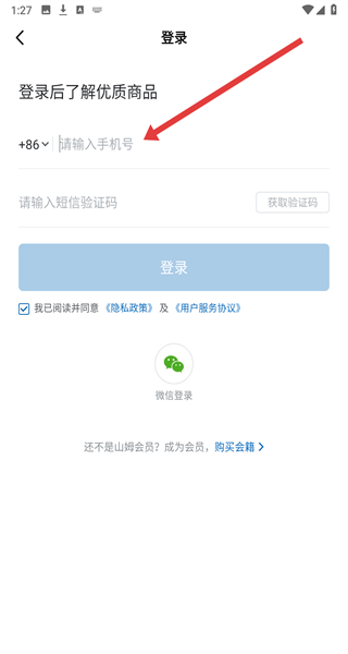 3、點擊上方輸入框輸入手機號,以便獲取驗證碼進行登錄。