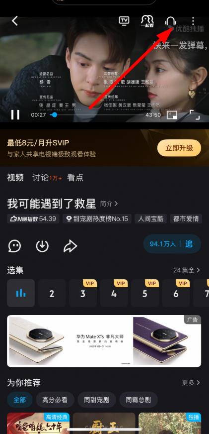 1、打開(kāi)優(yōu)酷app,選擇想要觀(guān)看的劇集,如我可能遇到了救星。