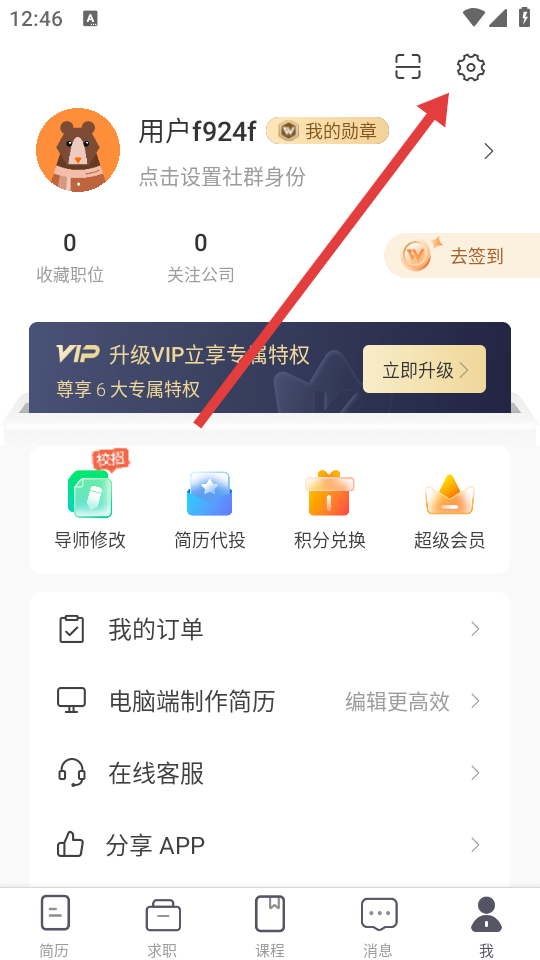 1、在我的頁面,需要點(diǎn)擊右上角的設(shè)置圖標(biāo),進(jìn)入設(shè)置的界面。