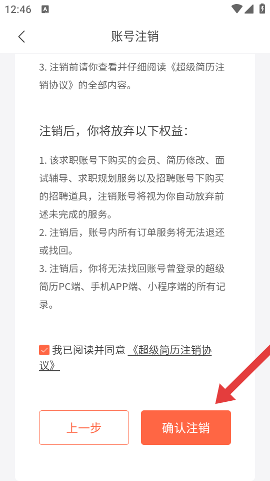 5、勾選注銷協(xié)議后,點(diǎn)擊確認(rèn)注銷按鈕,完成賬號注銷的操作。
