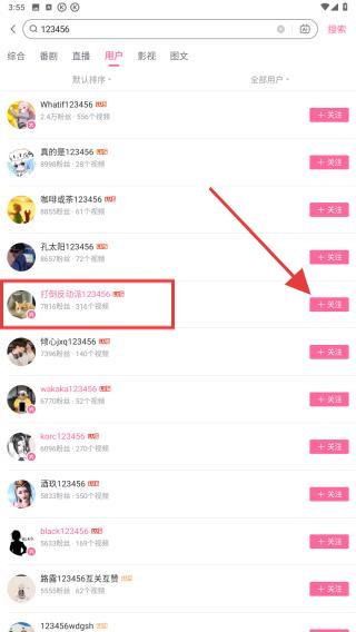 3、在搜索結(jié)果頁選擇用戶的分類,找到目標(biāo)用戶后點(diǎn)擊關(guān)注的按鈕即可。