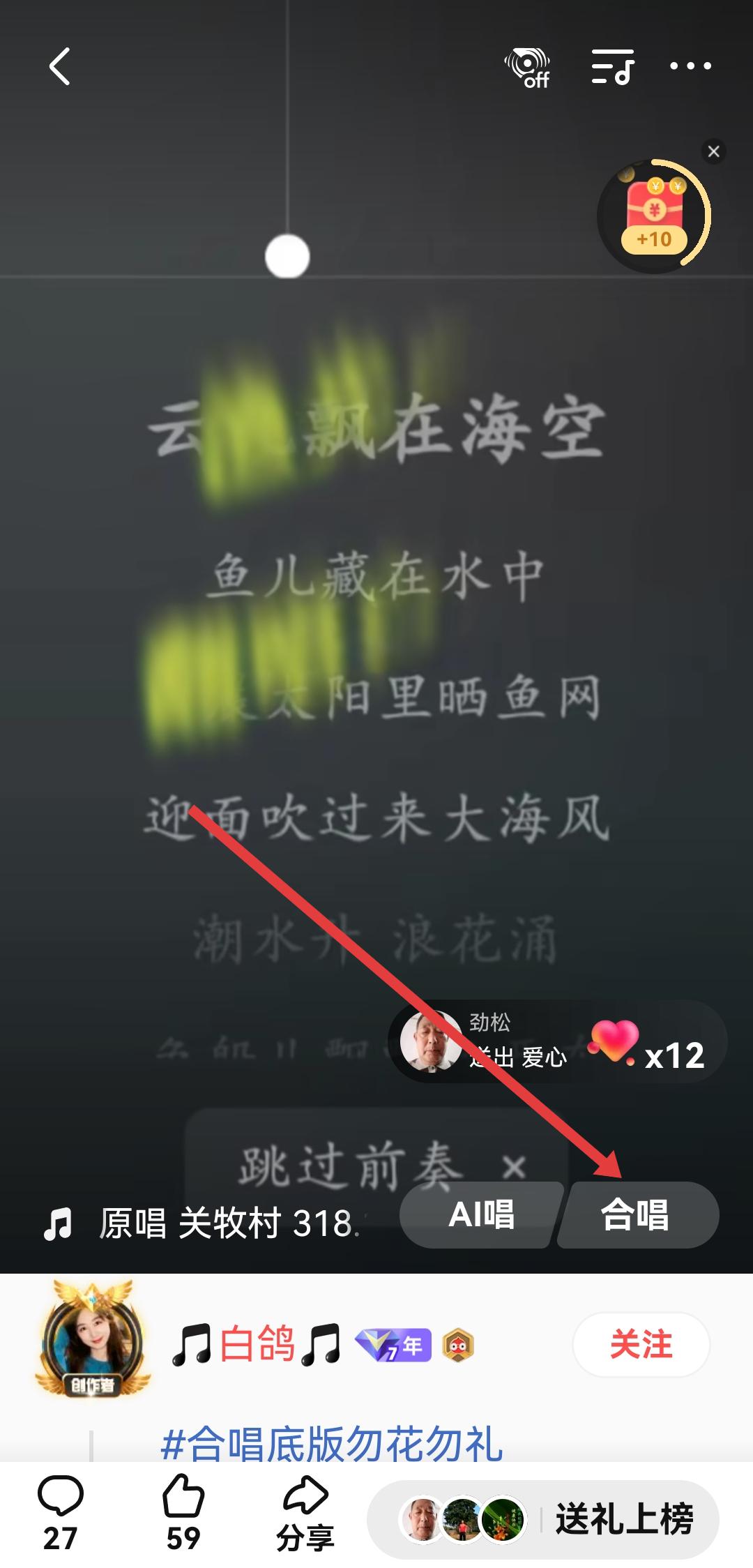 3、進入歌曲播放的界面,然后點擊底部的合唱按鈕,即可加入該合唱。